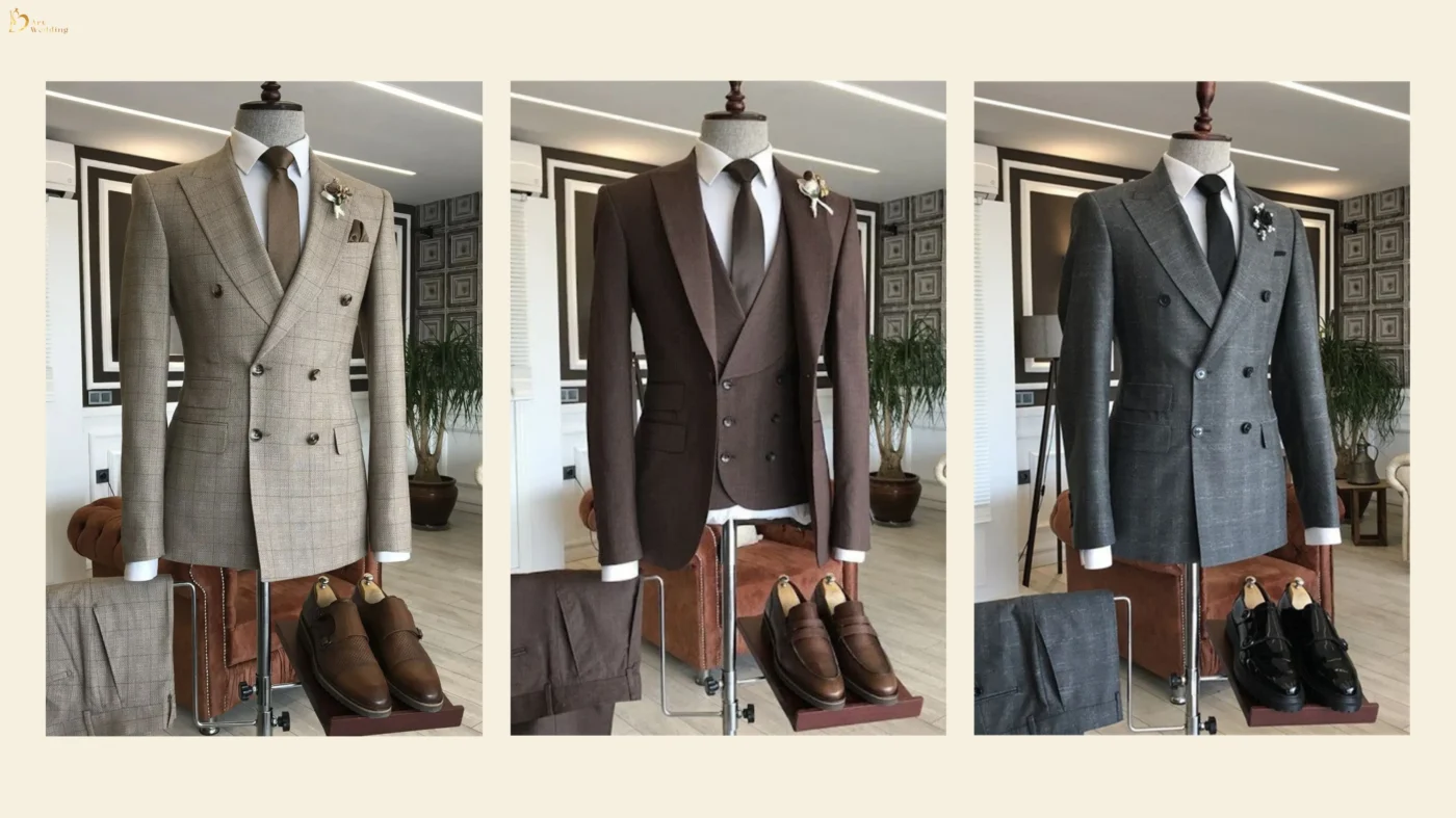 Bên cạnh đó, các sắc độ như xanh olive hay rượu vang trầm xuất hiện như lựa chọn dành cho những quý ông muốn tạo dấu ấn riêng. Đây là những màu sắc không quá phổ biến, nhưng đủ tinh tế để thể hiện gu thẩm mỹ và cá tính của người mặc, đặc biệt phù hợp với vest cưới chú rể trong những buổi lễ mang phong cách sang trọng, ấm cúng.